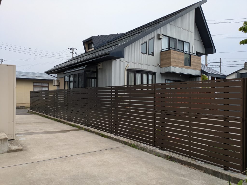アルミフェンスの工事です。 YKK AP ルシアスフェンス YS2H型 横スリット 外観 内観 フェンス工事をご検討の方は、ぜひ当店にご相談ください。