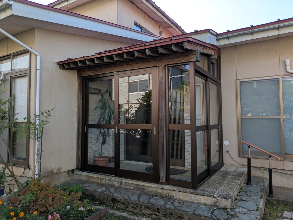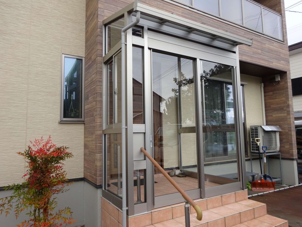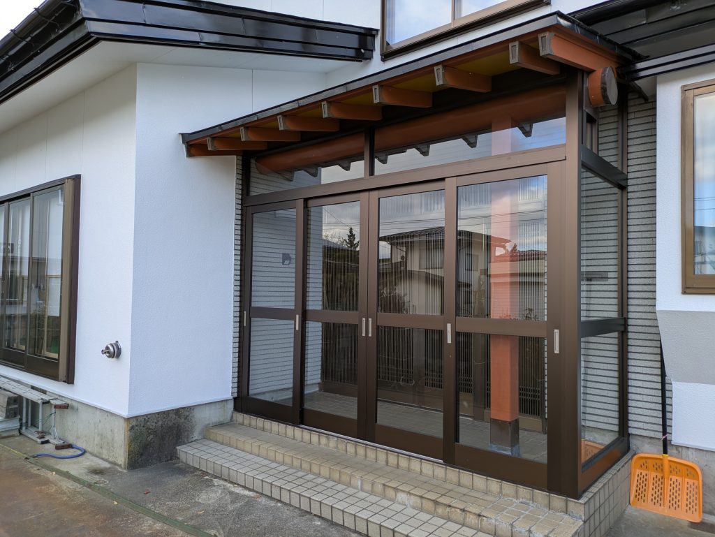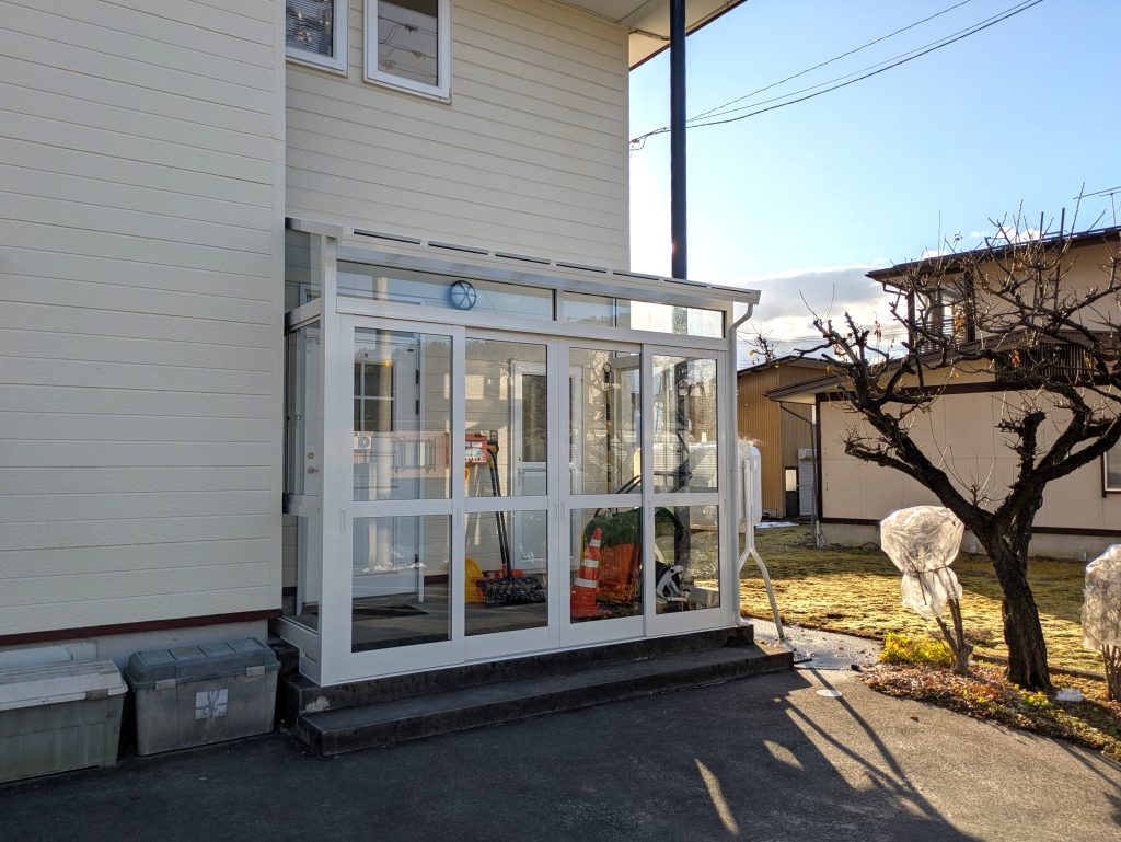 玄関風除室工事です。 YKK AP 風除室セフターⅢ L型 正面 右側 風除室はお客様のご要望に合わせて施工いたします。 ご検討の方は、ぜひ当店にご相談ください。
